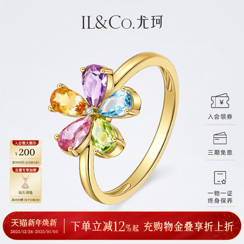 ILCO尤珂「和彩之花」18K金碧玺戒指天然多彩宝石花花型设计女戒