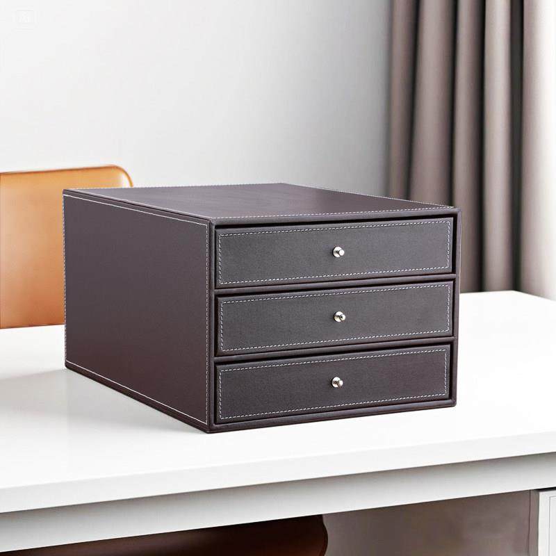商务办公用品桌面文件柜 A4文件收纳柜 资料文件抽屉式收纳盒皮革