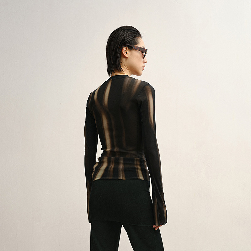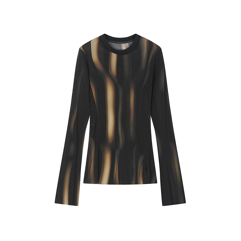 【商场同款】LESS2025年秋新款艺术印花修身长袖T恤女2P8115970