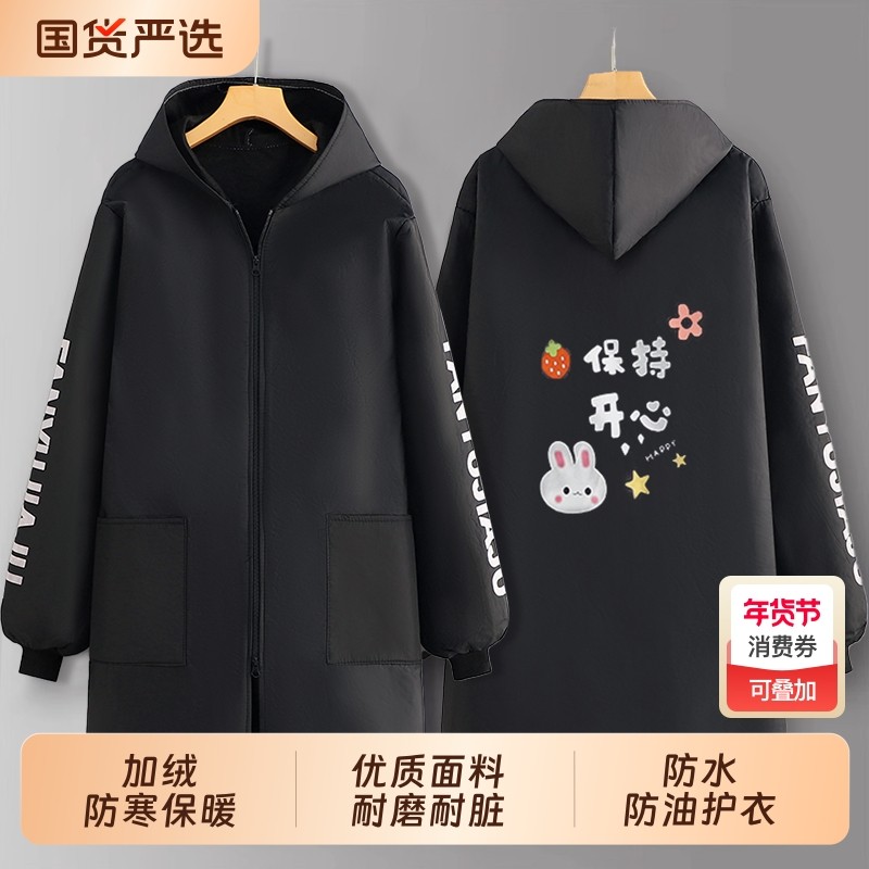 冬季加绒罩衣大人加厚长袖围裙防水韩版女时尚外套家用工作服定制