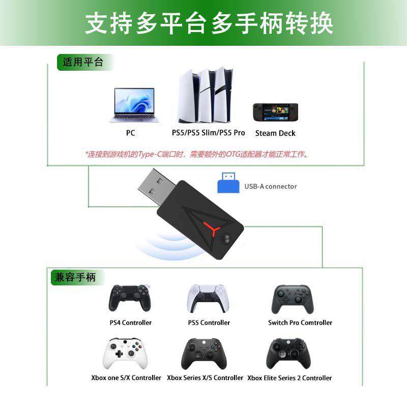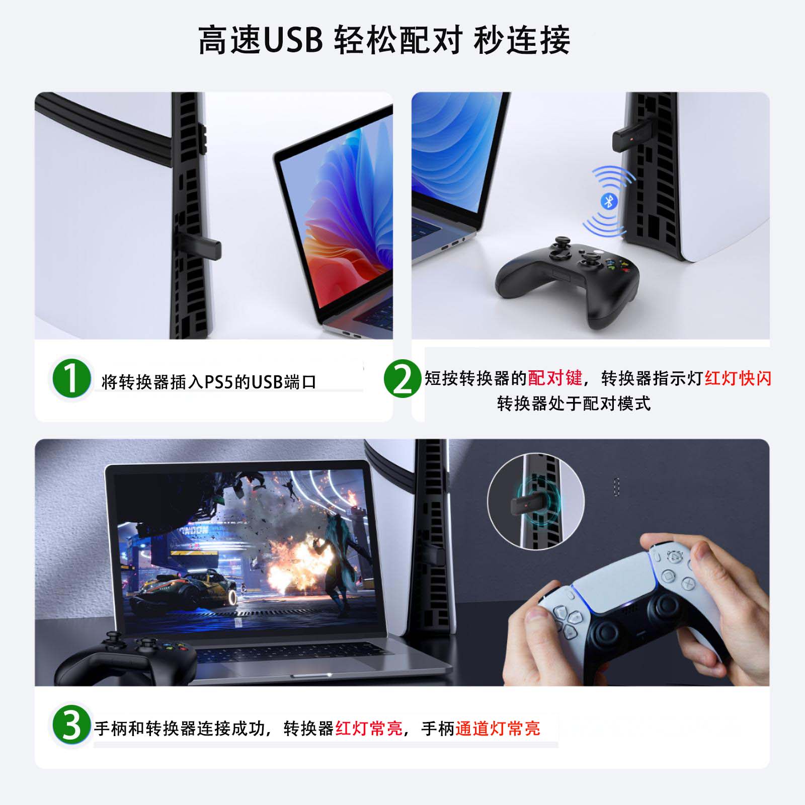 PS5主机手柄蓝牙接收器 转换器 Xbox/Ones/PS4手柄连PS5/PC/Steam