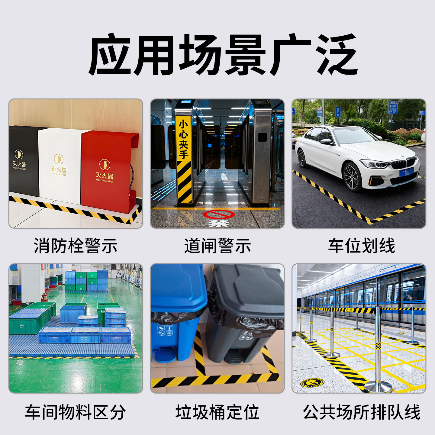 黑黄警示胶带斑马线警戒带黄黑隔离带消防彩色定位胶带车间地标贴线地贴地面保护膜专用标识胶带装修地板胶带