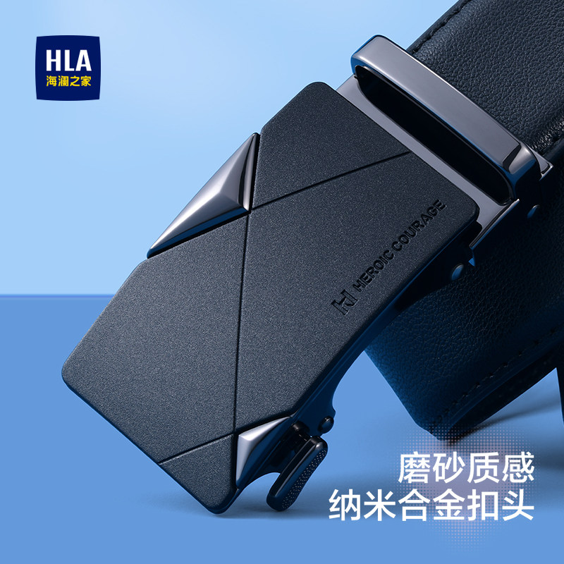 海澜之家男士针扣皮带真牛皮腰带年轻人商务百搭新款西装裤带正品