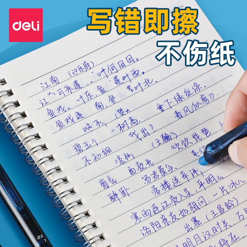 得力可擦笔中性笔小学生专用三年级热可擦蓝色黑色晶蓝笔芯0.5黑可擦笔水笔圆珠笔可复写可擦中性笔蓝色可擦