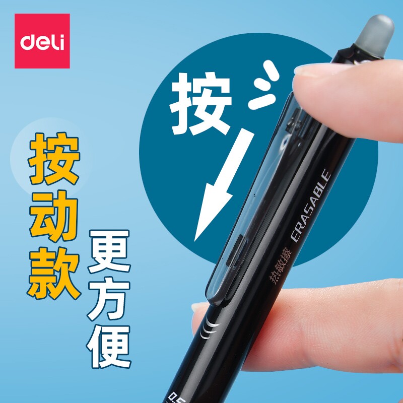 得力热敏可擦中性笔小学生三年级专用按动热可擦笔魔力擦晶蓝笔芯