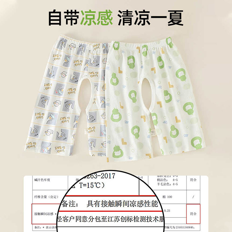 宝宝开裆裤纯棉薄款婴儿七分裤网眼透气睡裤小童空调裤子夏季宽松