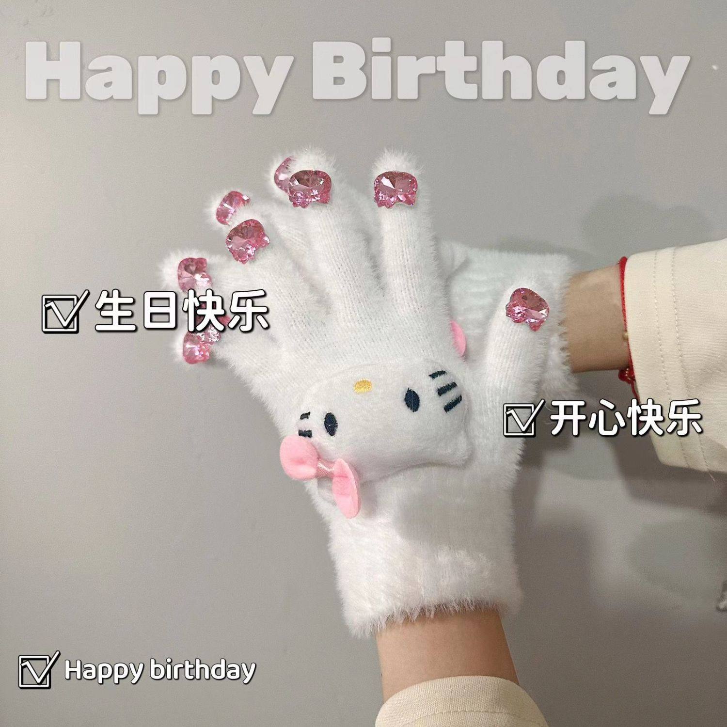 mikko联名可爱卡通猫咪毛绒手套女冬季翻盖半指触屏加厚骑行保暖