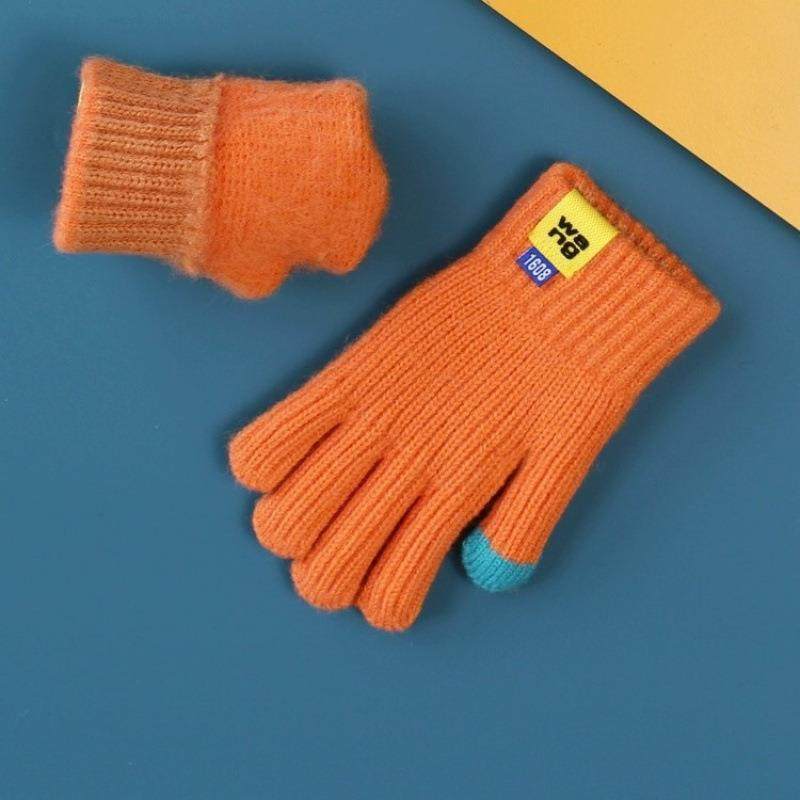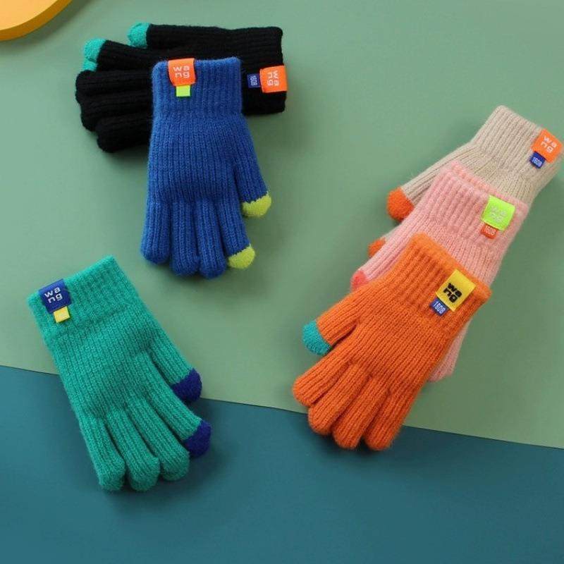 高颜值儿童手套冬季保暖一体绒五指针织分指女宝宝男童小孩防冻手