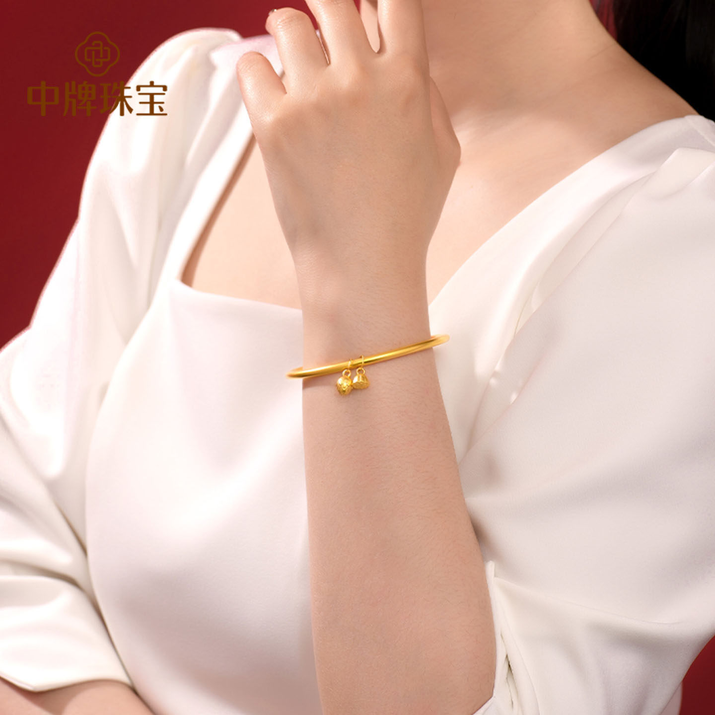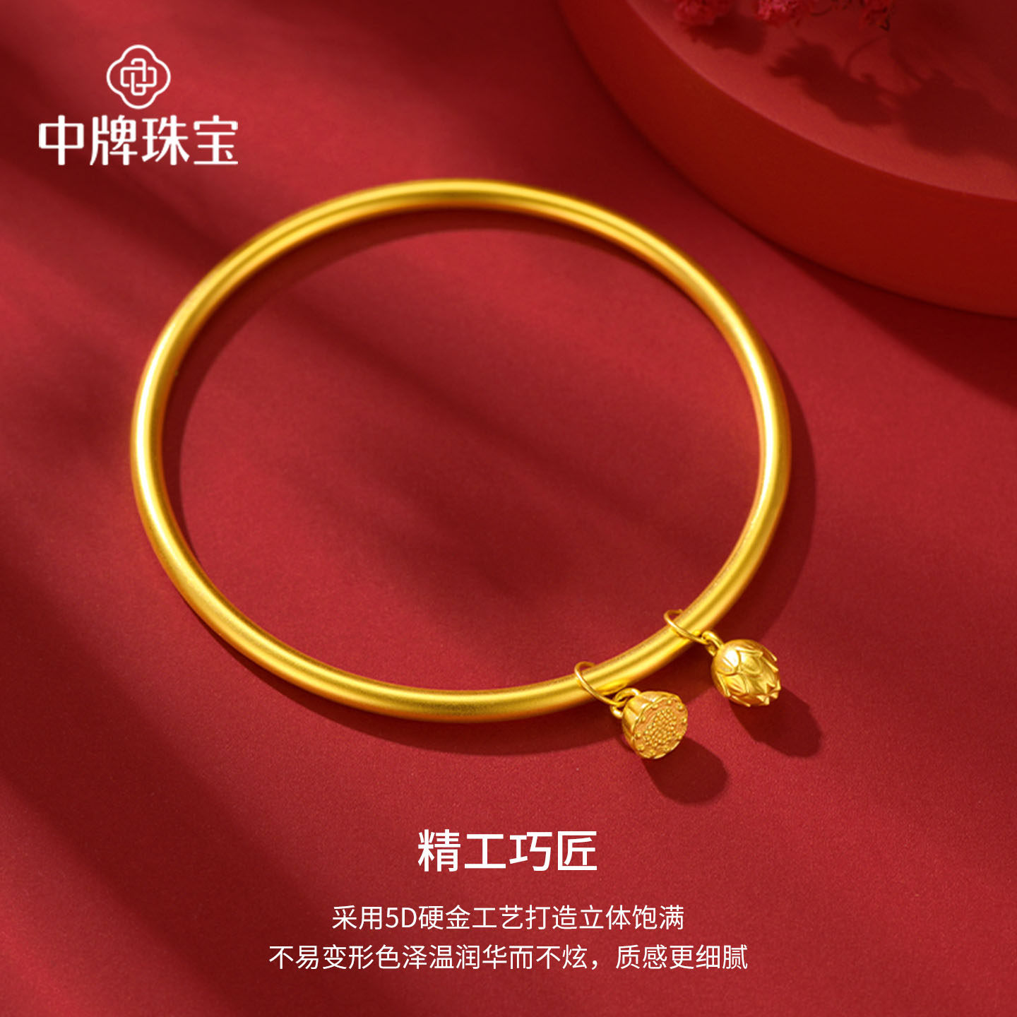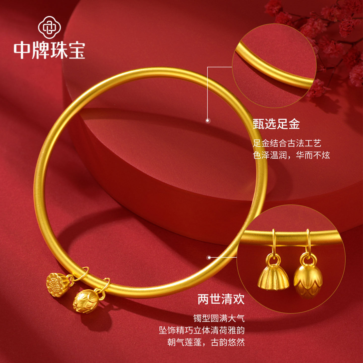 两世欢黄金手镯足金素圈两生欢金镯子古法莲蓬莲花传承金镯女纯金