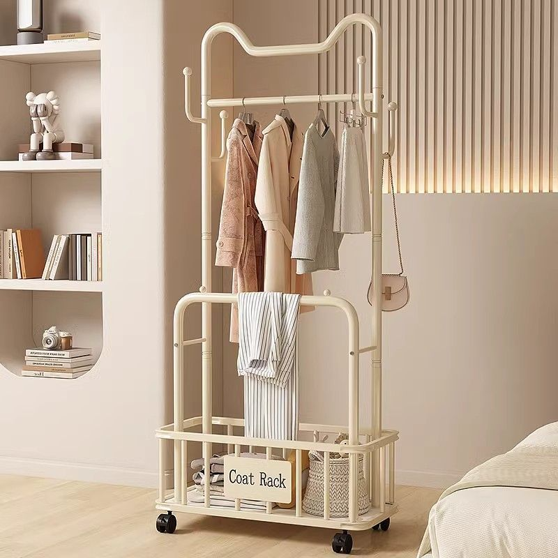 衣架落地卧室奶油风挂衣架家用铁艺简易晾衣架室内客厅移动衣帽架