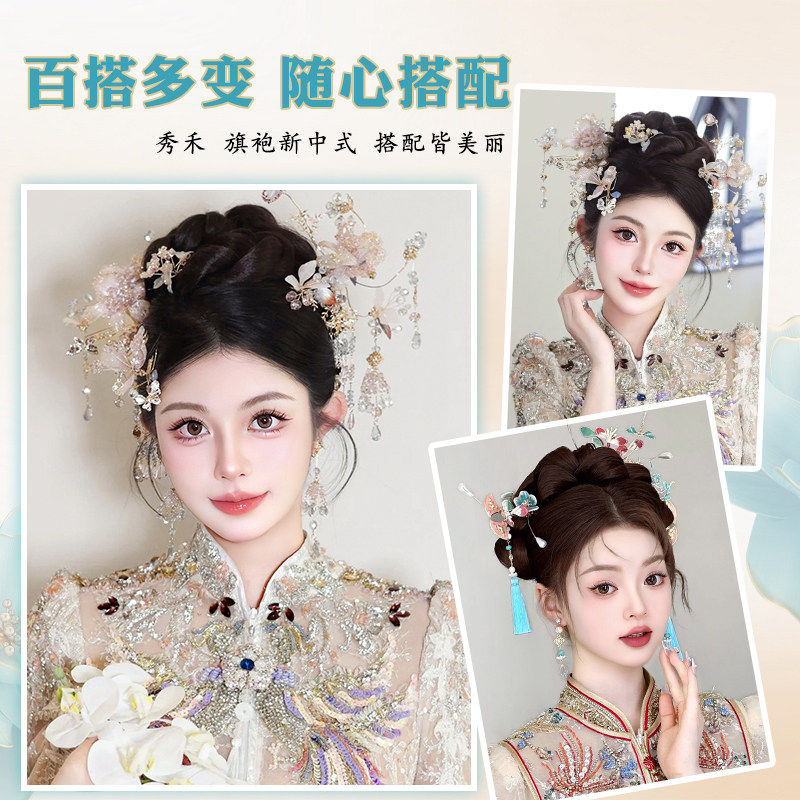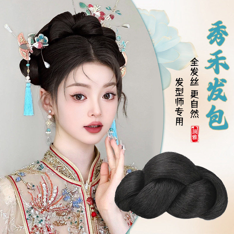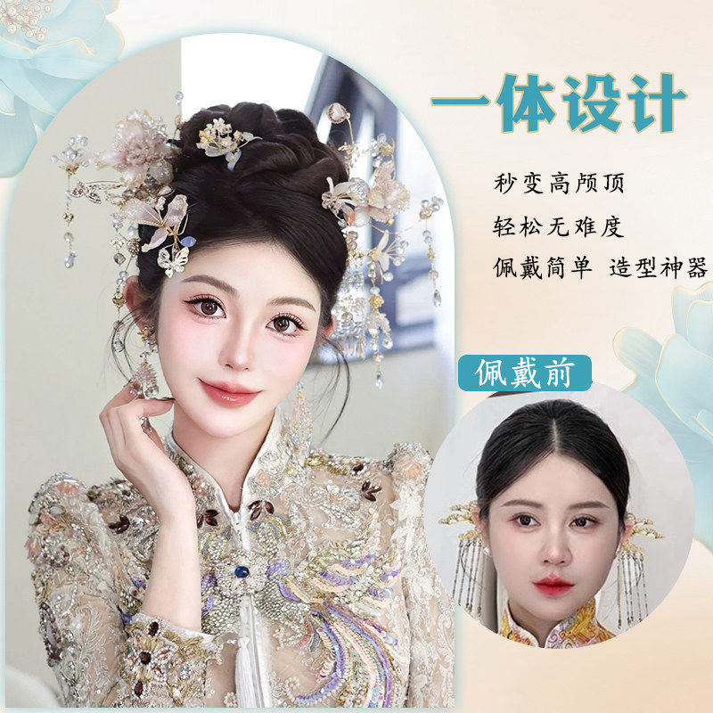 【通用型】新中式预制发包秀禾头饰假发一体式盘发专用高颅顶发髻