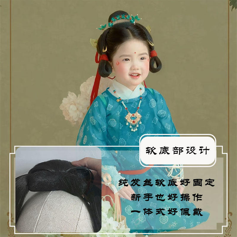 唐风儿童一体式懒人古装汉服女童假发髻小童古风假发包舞台演出
