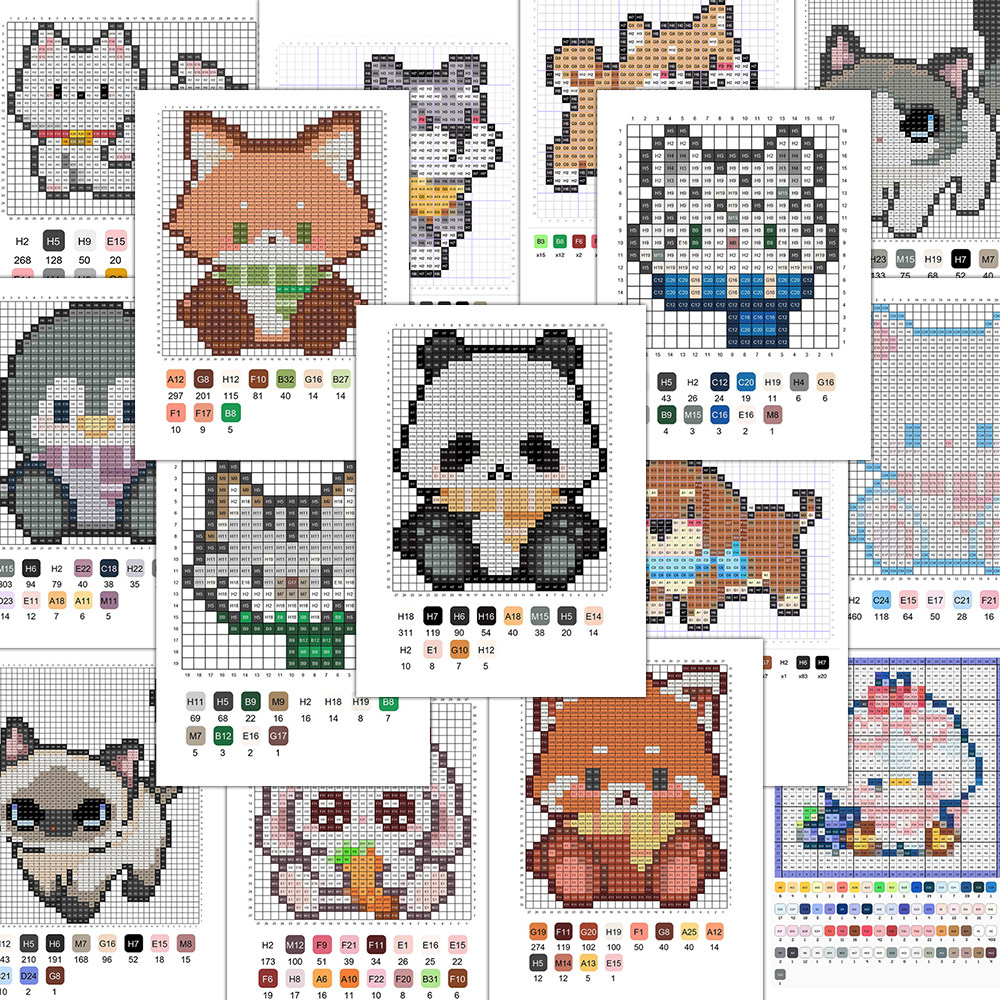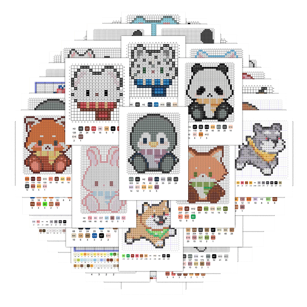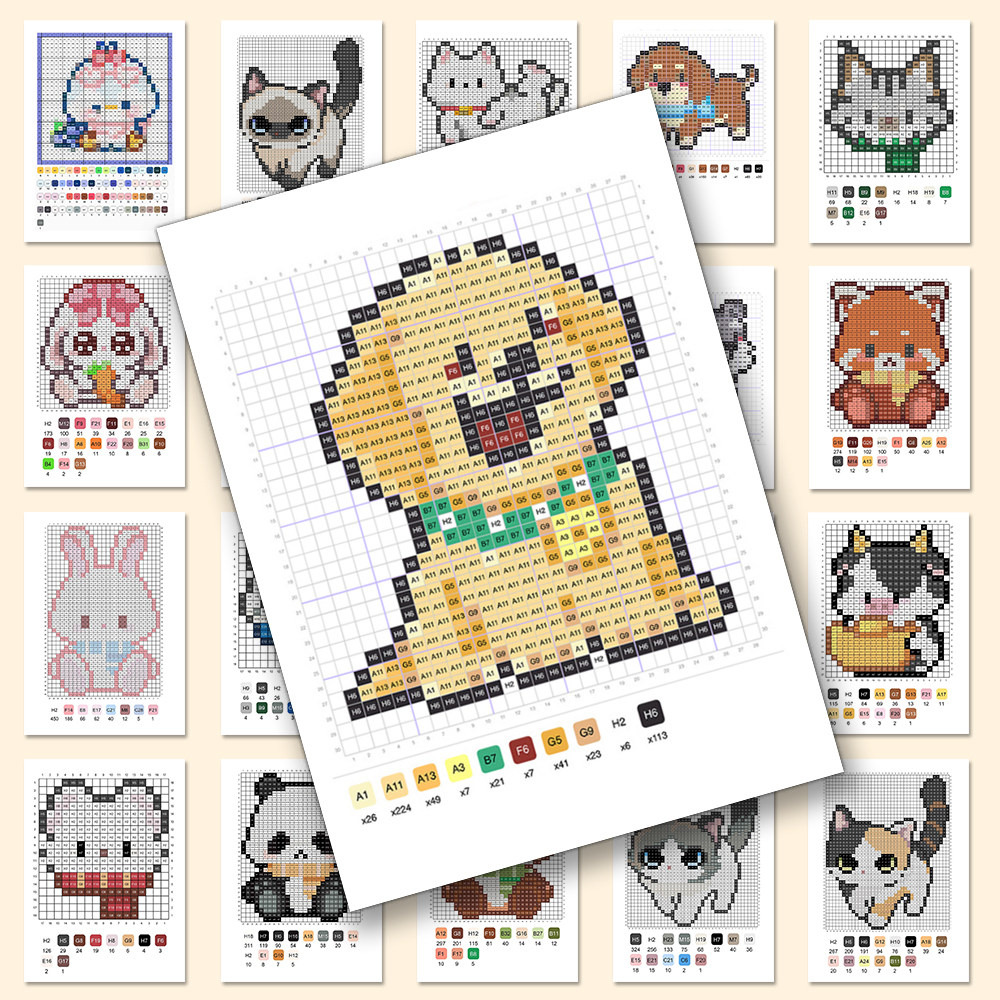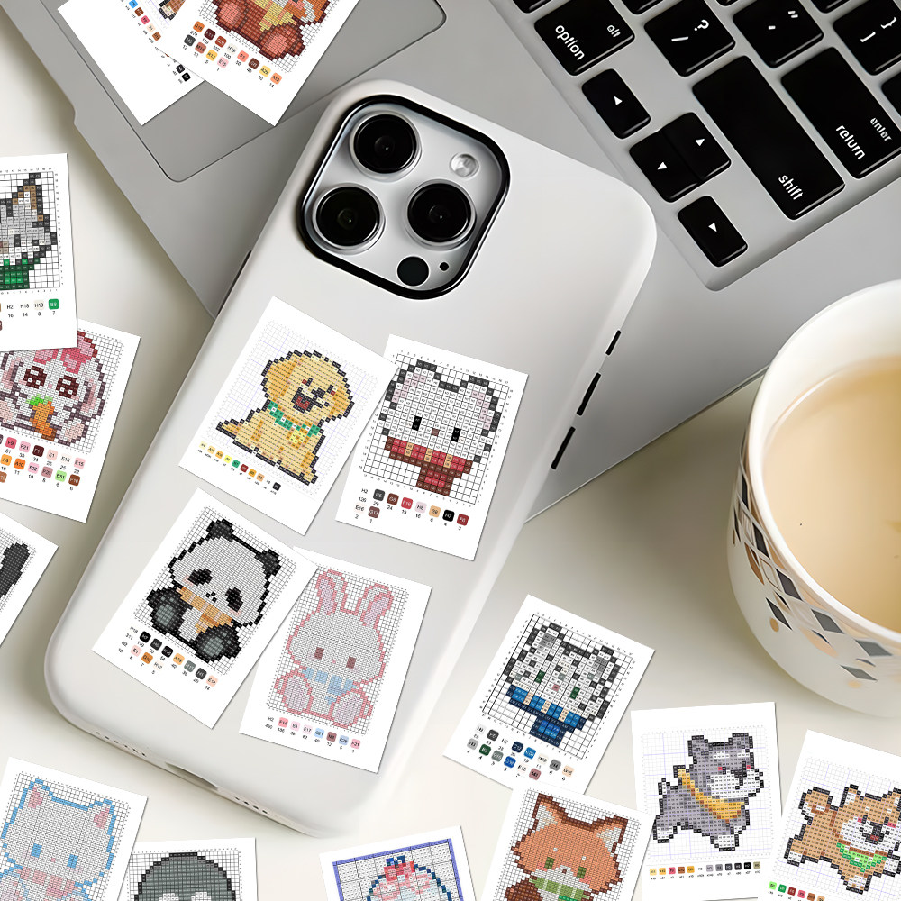 240张小动物拼豆图纸贴纸热门趣味可爱卡通萌宠拼豆素材参考贴画