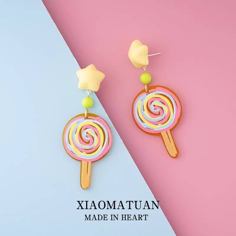 糖果系列彩色棒棒糖耳环女新款原创甜妹设计感星星银针耳坠耳饰