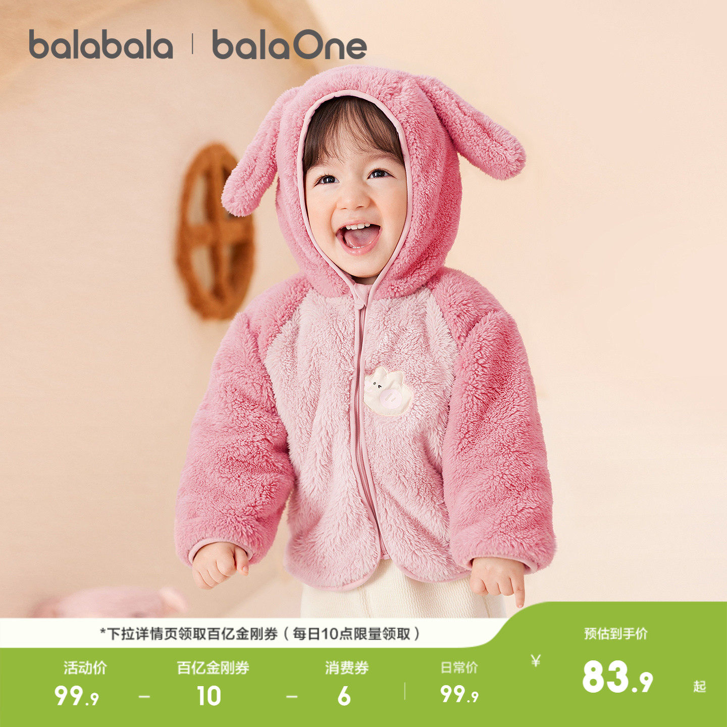 巴拉巴拉balaOne儿童外套男童女童装秋冬珊瑚绒保暖加厚护肚纯棉