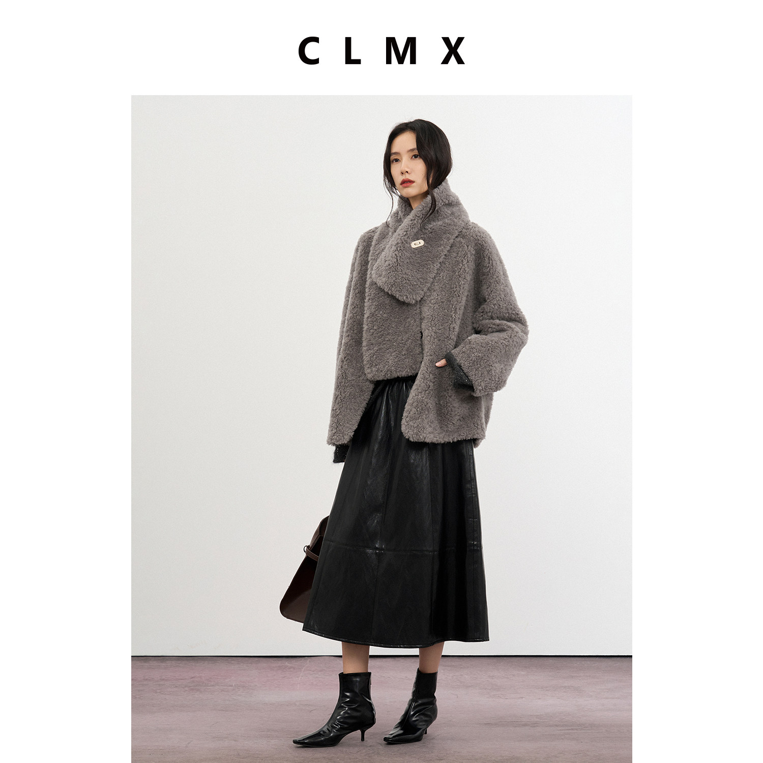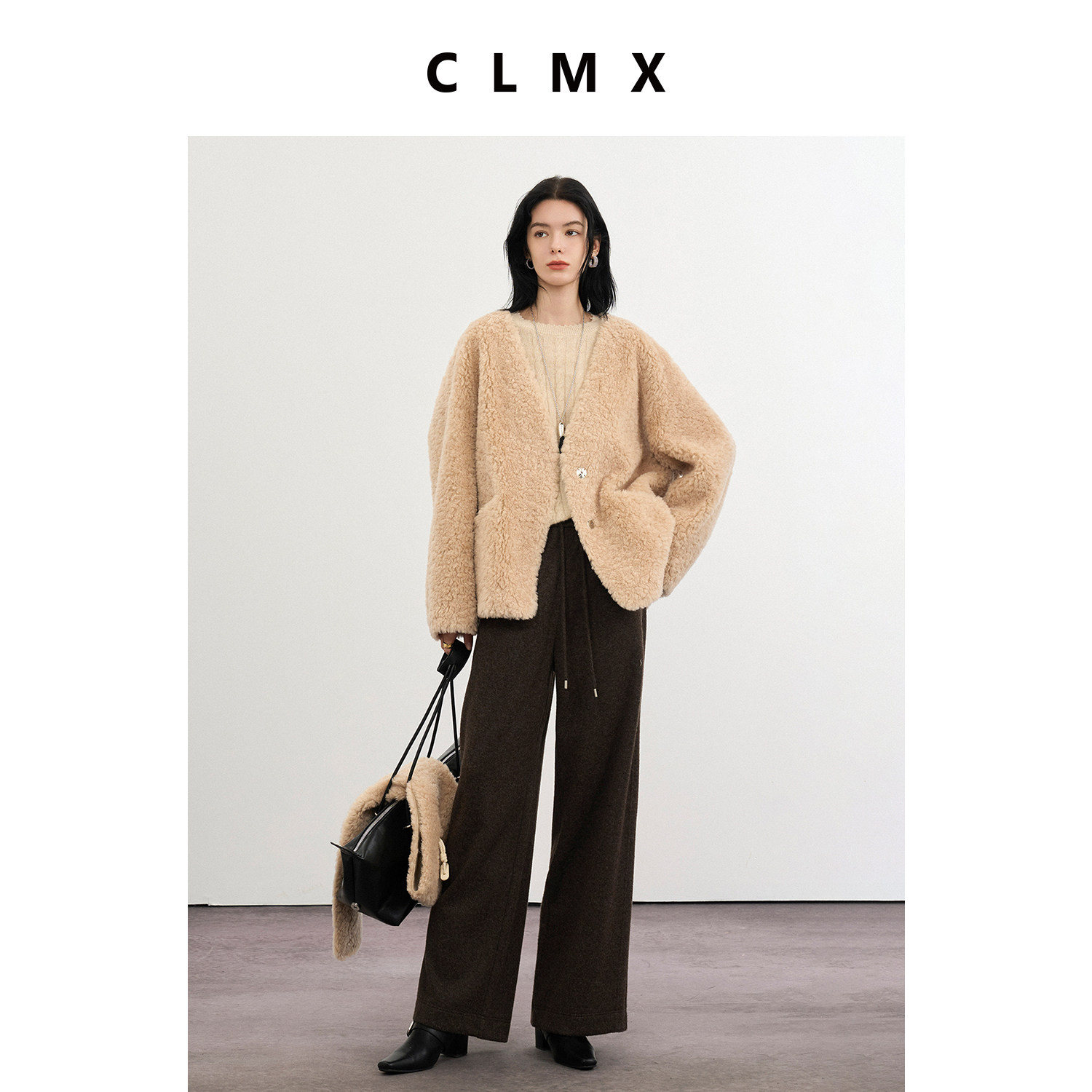 CLMX宽松V领100%绵羊毛外套利落宽松H廓形直顺显瘦秋冬纯色上衣女