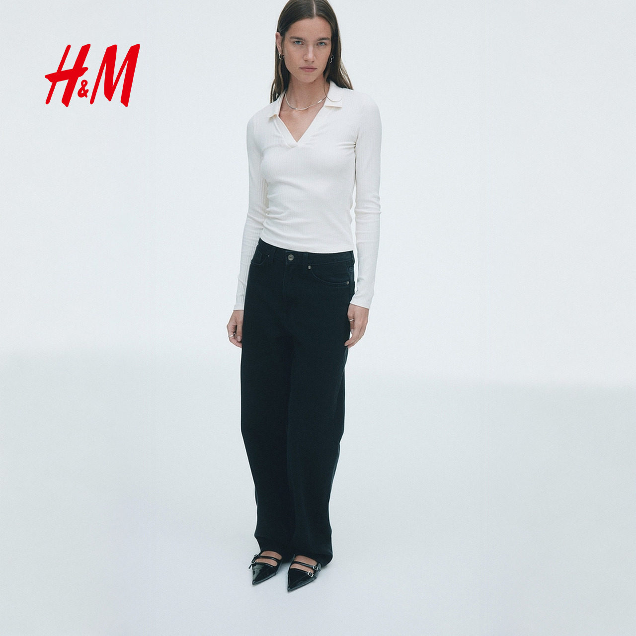 HM女装牛仔裤2025新款直筒复古牛仔裤直筒高腰设计潮流裤1209534