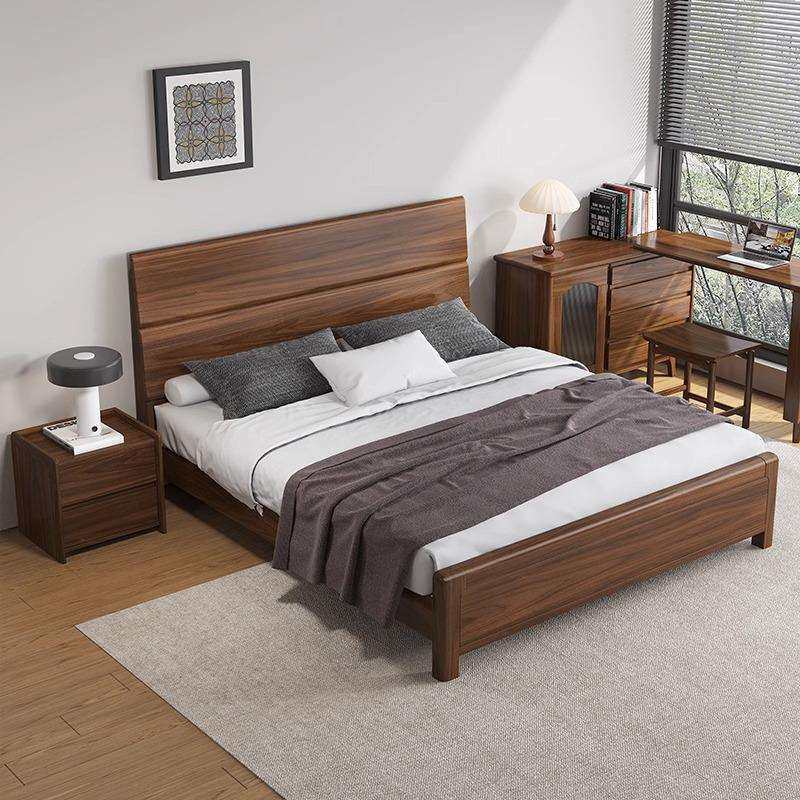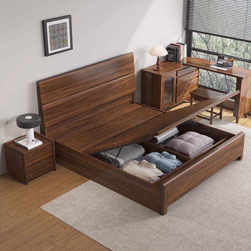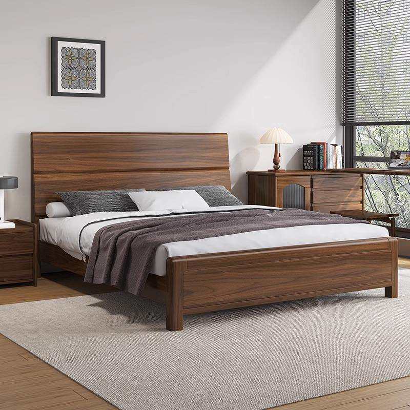 黑胡桃木实木床1.8米中式大板双人床直拼1.5高箱储物收纳卧室家具