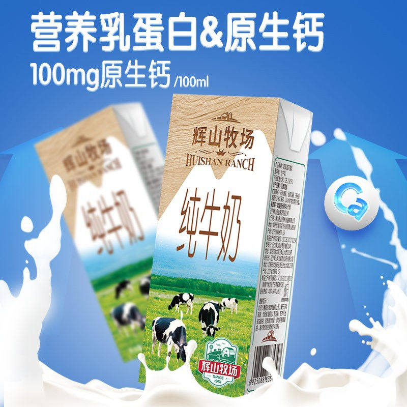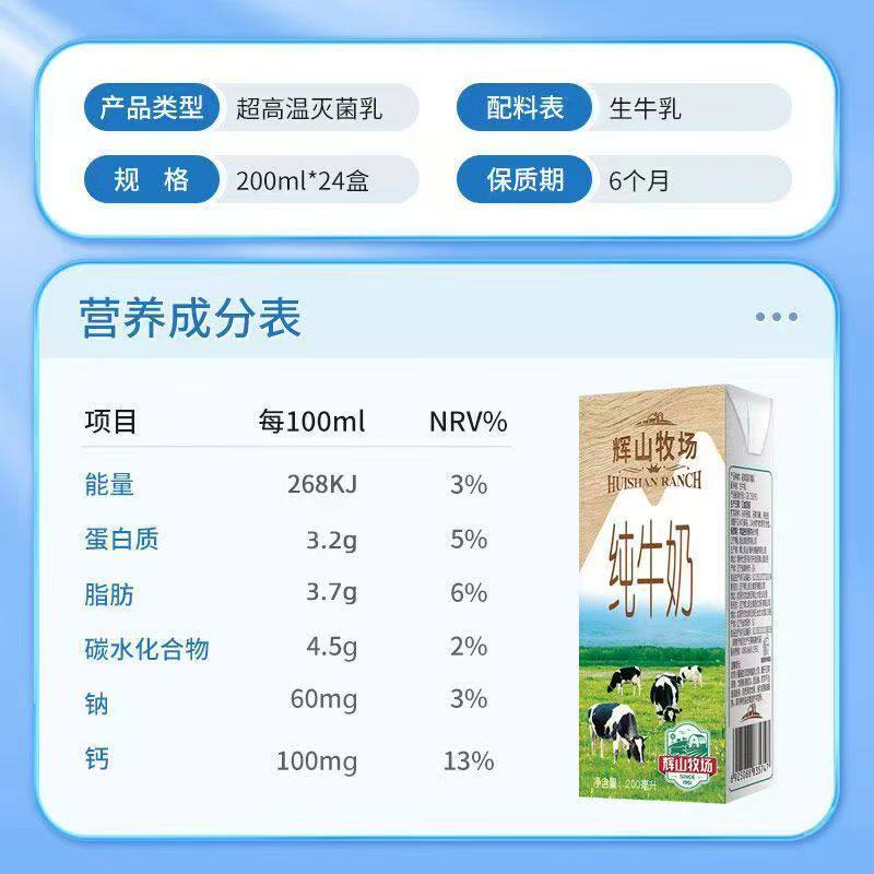 辉山纯牛奶3.2g蛋白质200ml*24盒装营养早餐纯牛奶手提整箱送礼