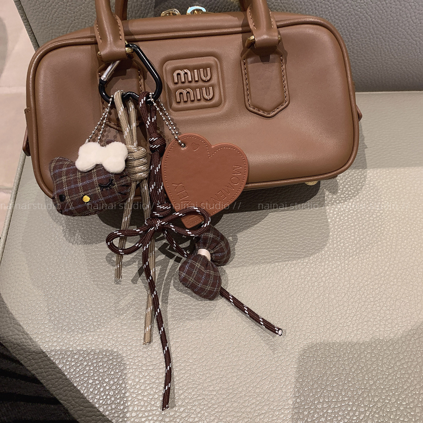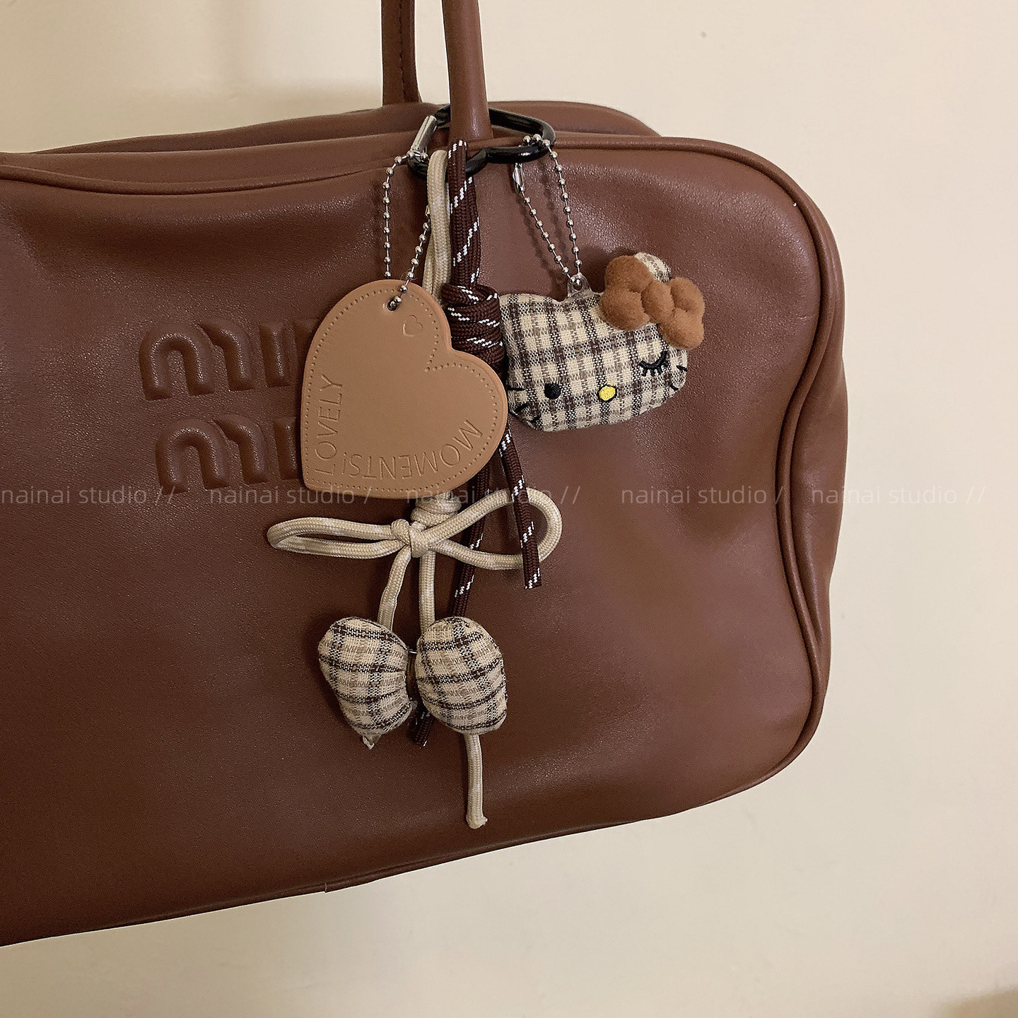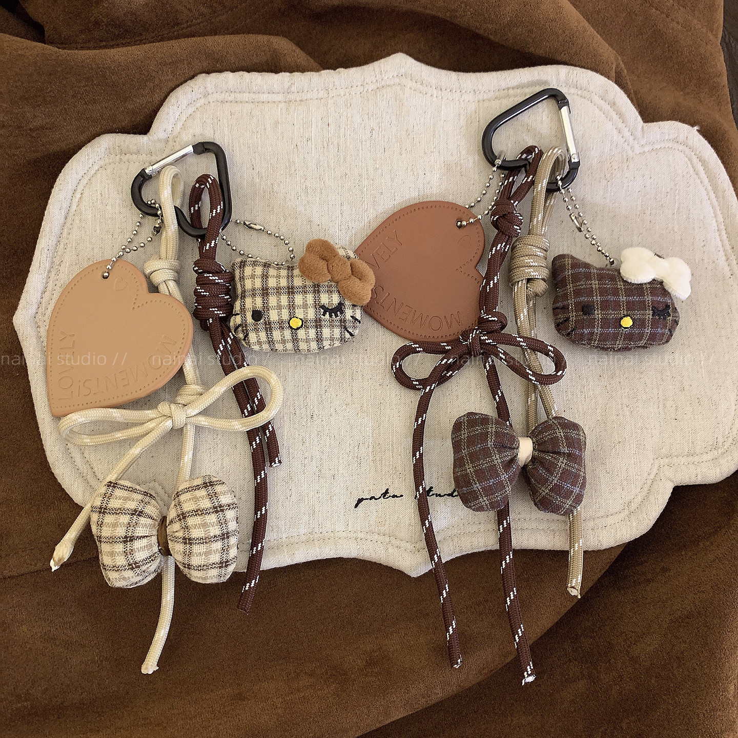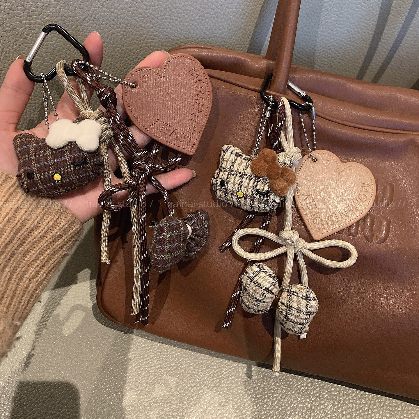 Kitty蝴蝶结挂件~可爱毛绒蝴蝶结miu系风爱心包包挂饰车钥匙扣潮
