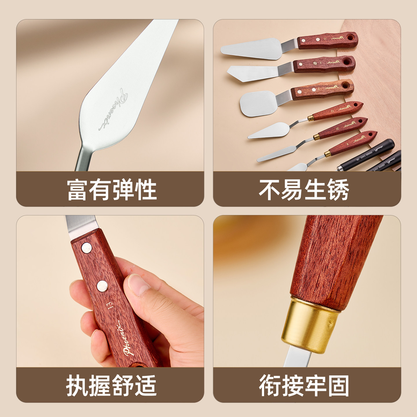 凤凰画材刮刀颜料油画刀不锈钢套装水粉丙烯颜料重彩油画棒挑刀刮画油画框油画刀刀画铲刀美术画画工具