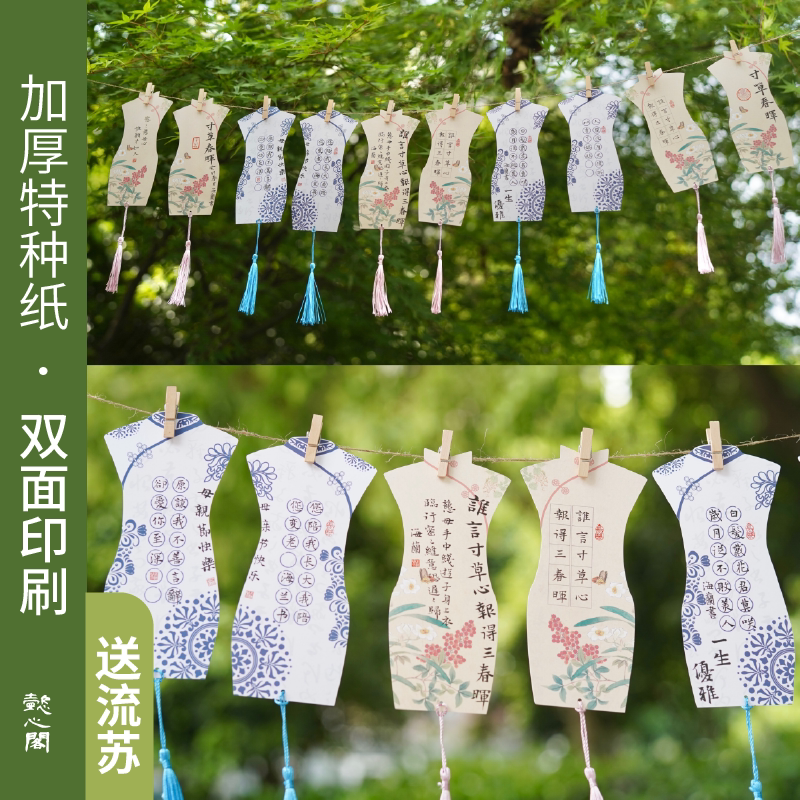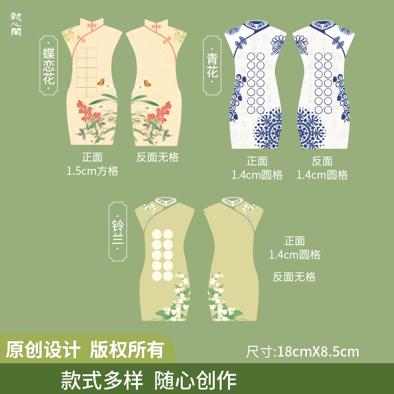 懿心阁妇女节旗袍书签创意硬笔书法作品纸节日书法纸学生专用纸