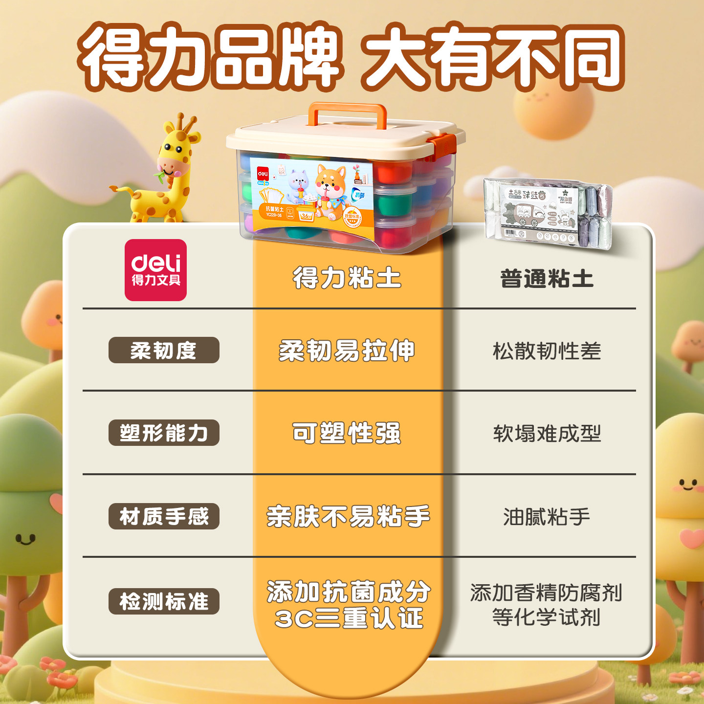 得力超轻粘土儿童彩泥幼儿园用橡皮泥36色玩具手工黏土食品玩具级幼儿园专用益智玩具大容量加量小学生