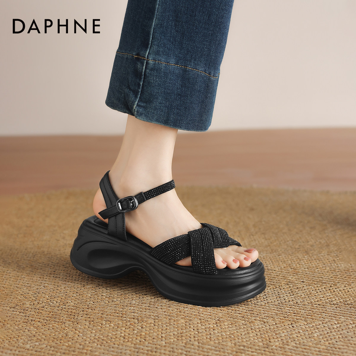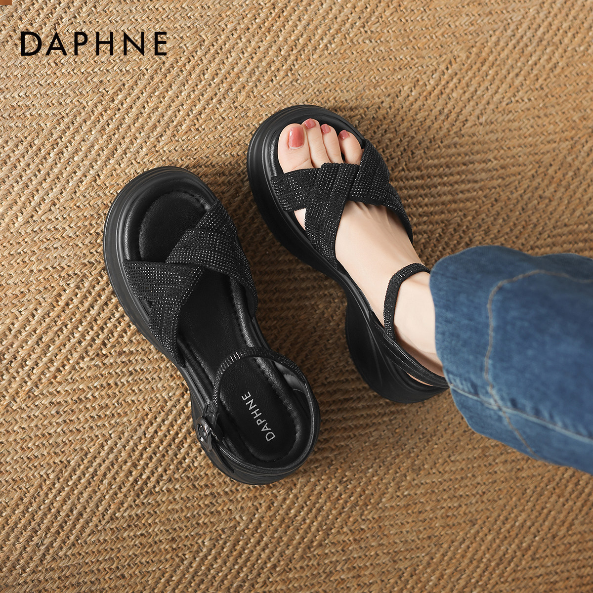 达芙妮黑色凉鞋女款夏季2026新款外穿厚底法式绝美坡跟运动凉拖鞋