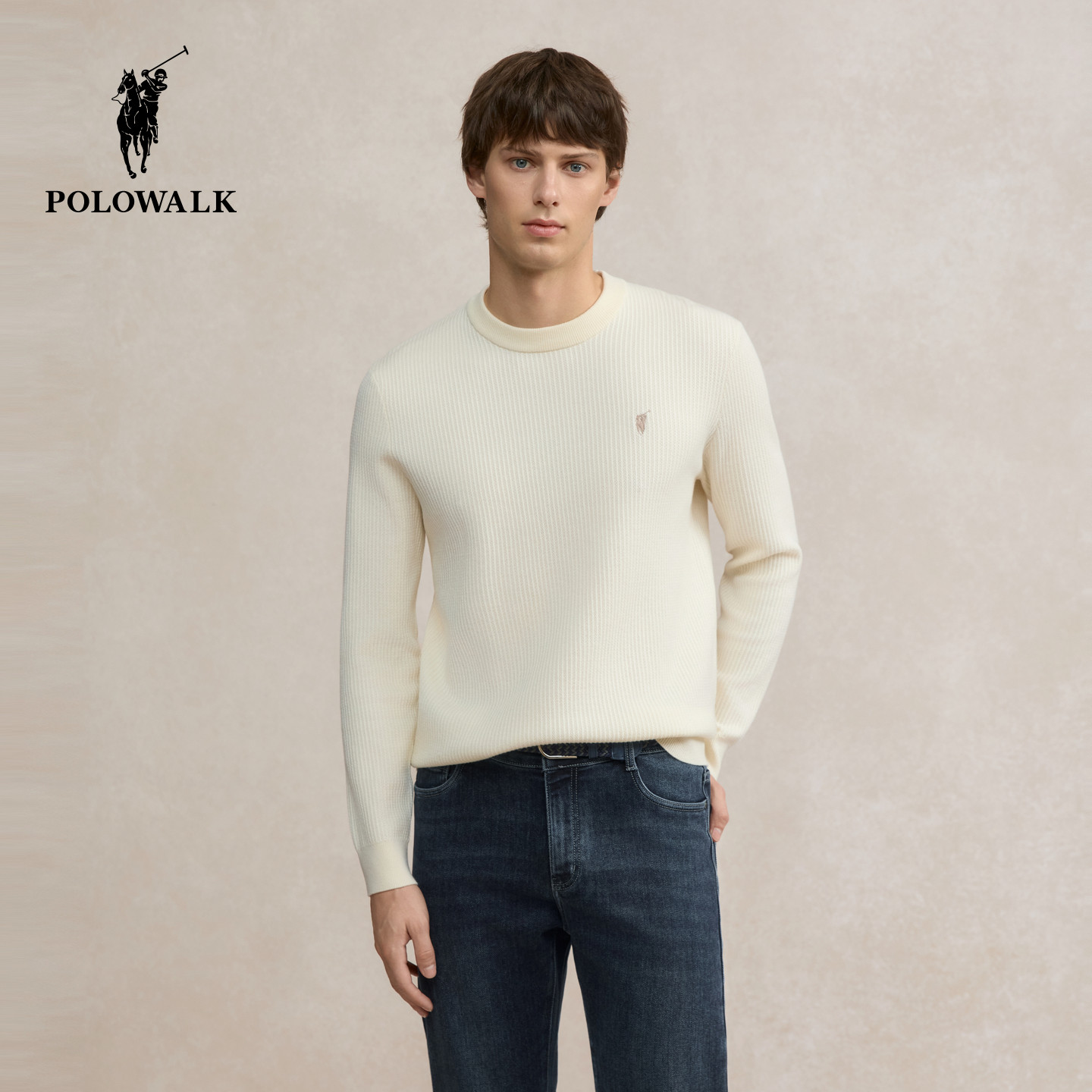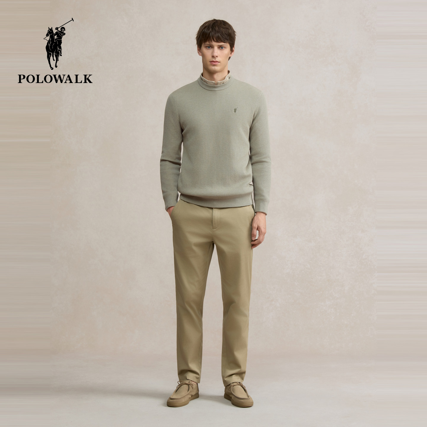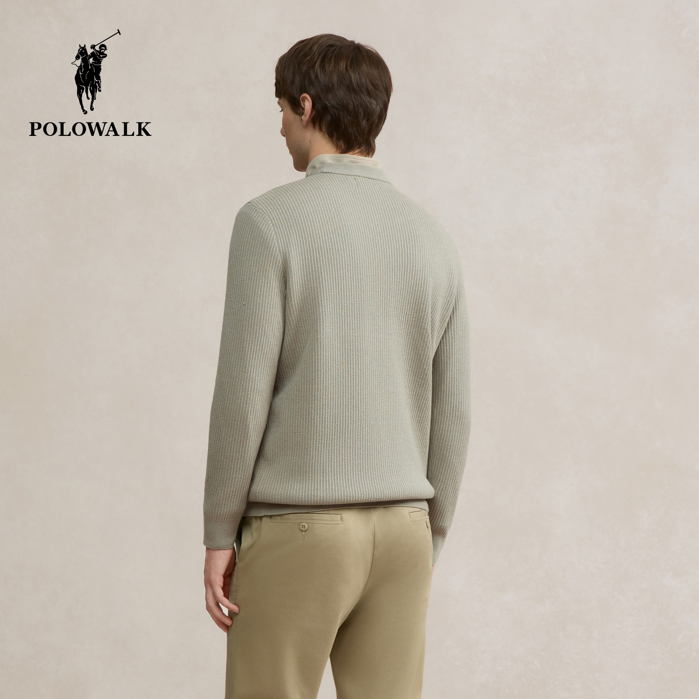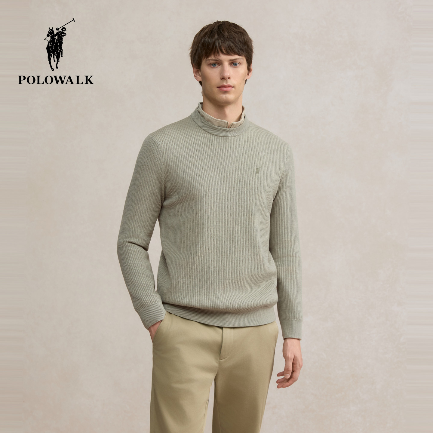 POLOWALK男士半高领针织衫25秋冬新款纯色针织毛衣时尚百搭上衣男