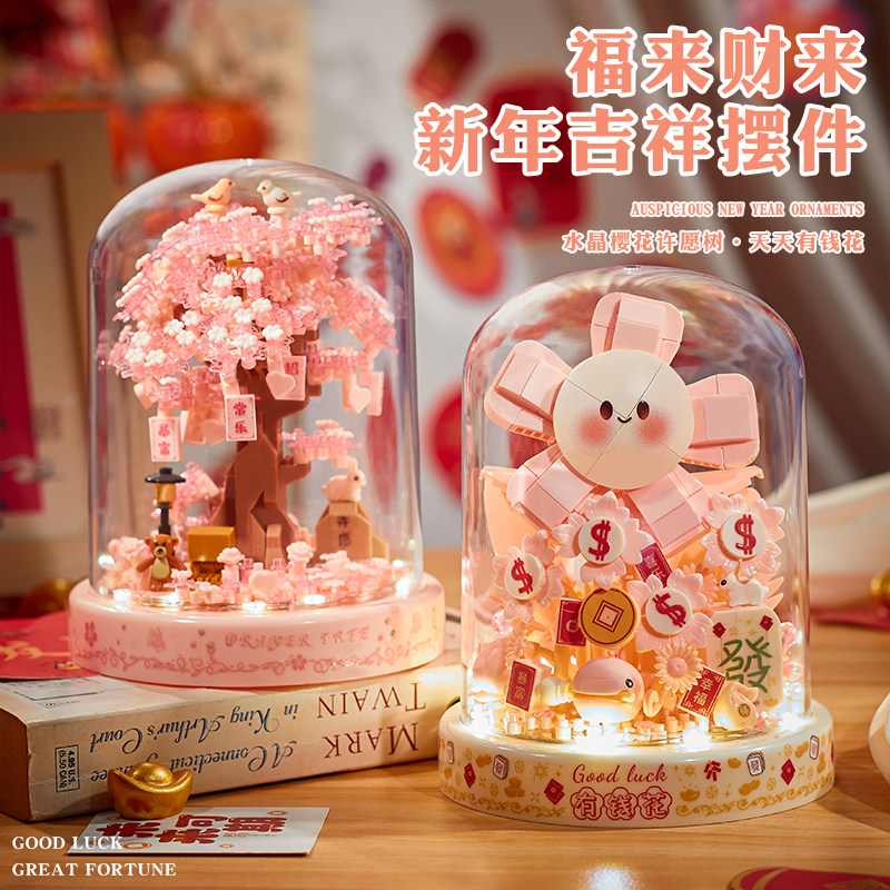 兼容乐高永生花积木花束拼装玩具招财樱花树手工diy摆件女生礼物