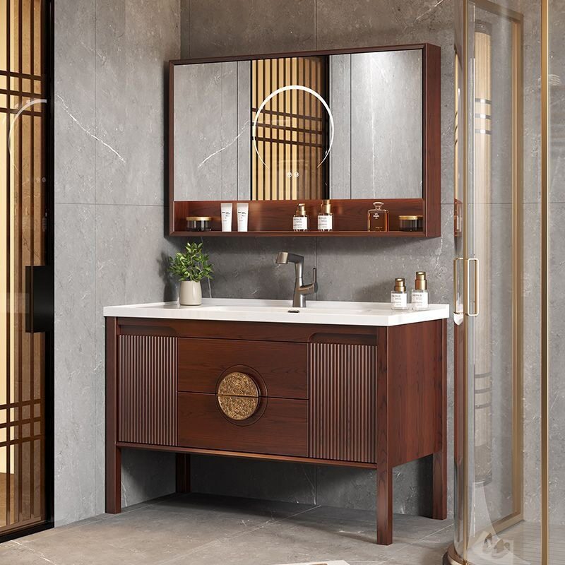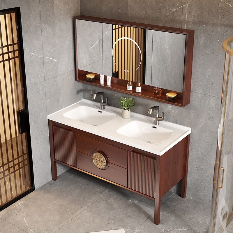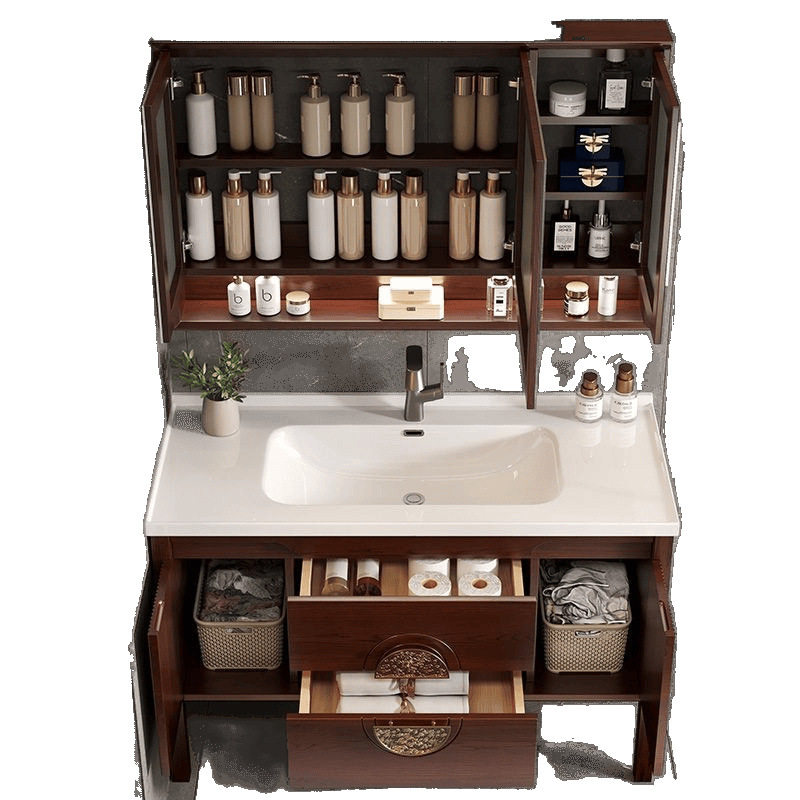 中式橡木浴室柜卫生间组合智能陶瓷洗手池落地式一体洗漱洗脸盆