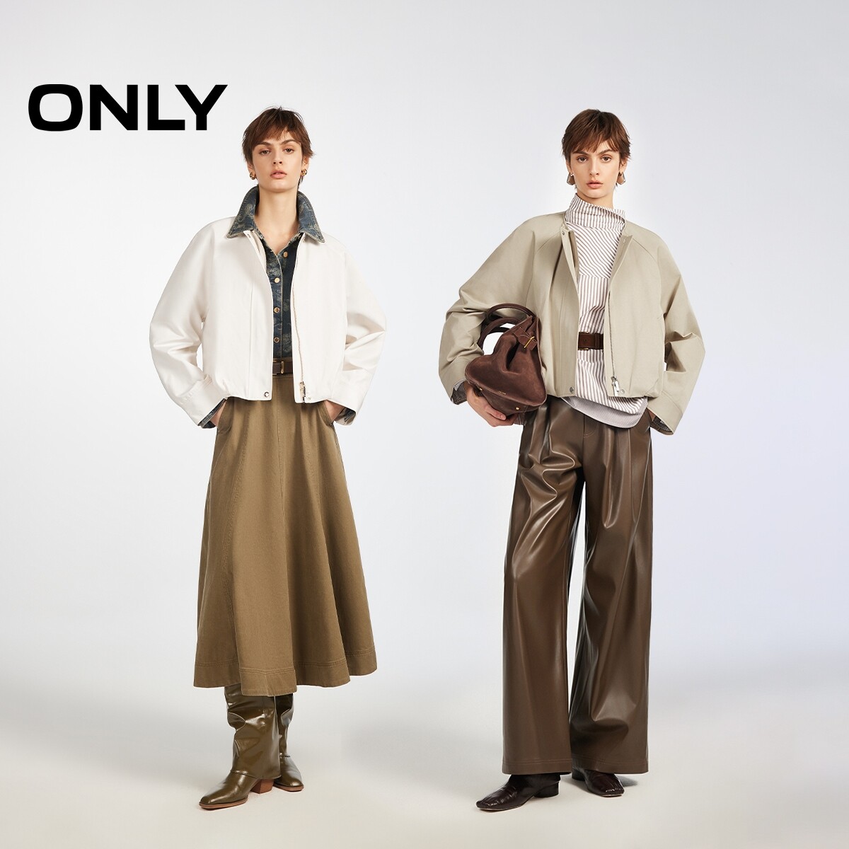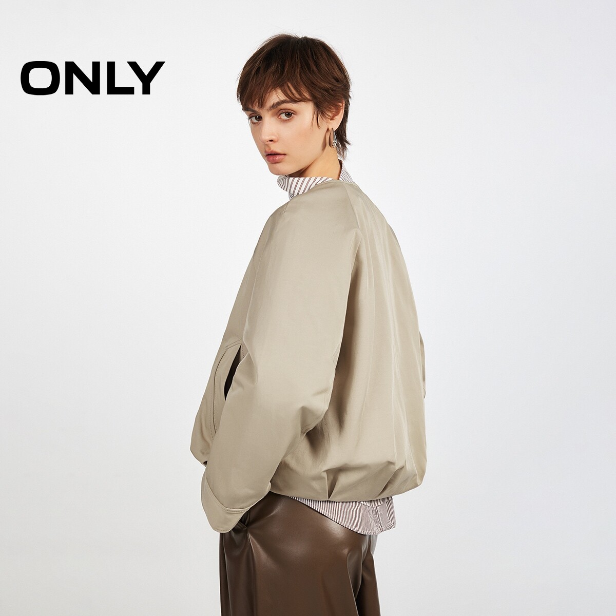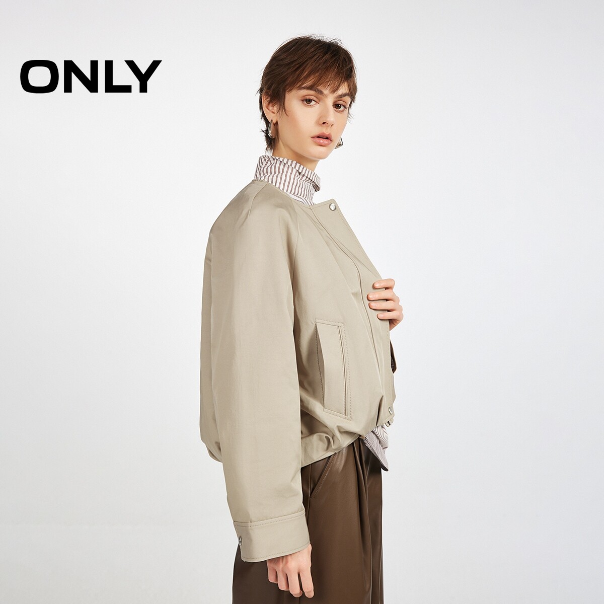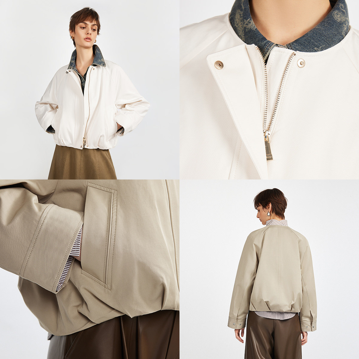 ONLY2026春季新款插肩门襟双拉链按扣宽松解构立体下摆圆领风衣女