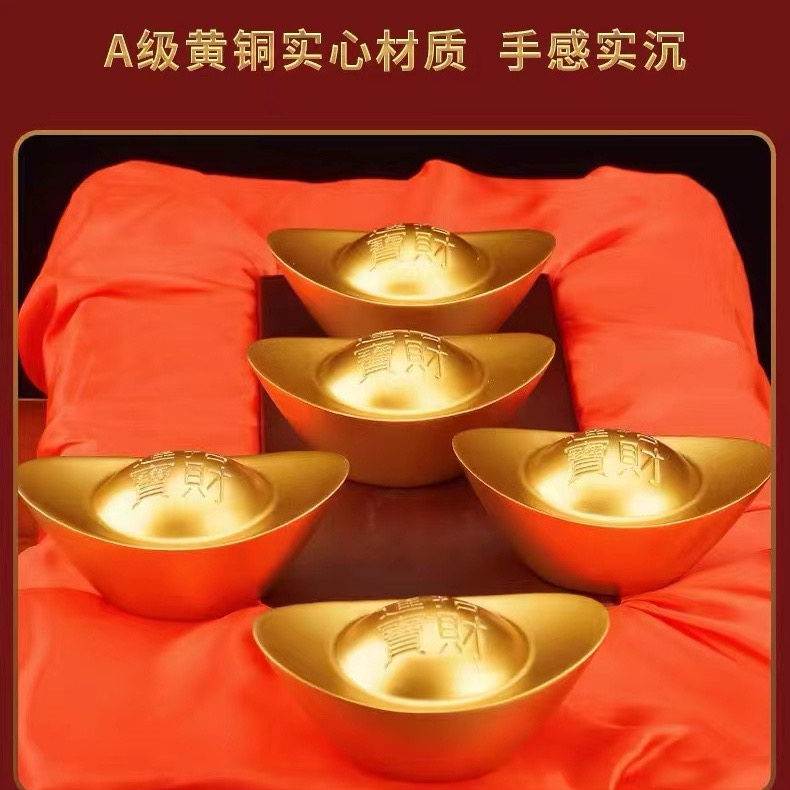 实心沙金元宝铜摆件黄铜道具金条财神客厅聚宝盆装饰开业礼品朋友