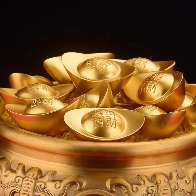 黄铜实心沙金元宝摆件道具财神客厅聚宝盆店铺装饰品开业乔迁礼品