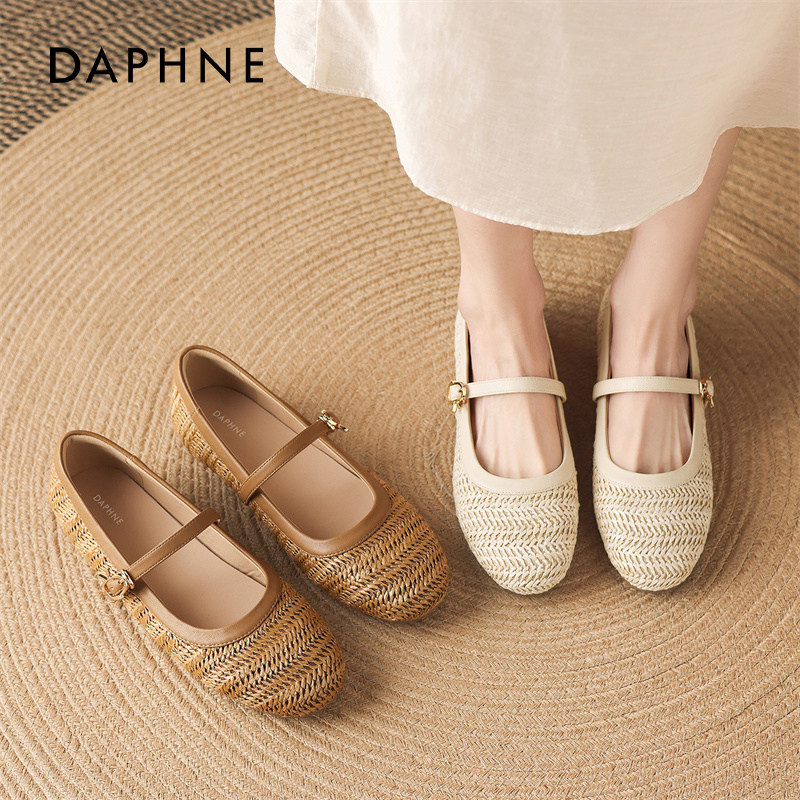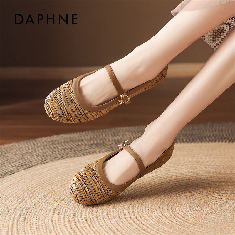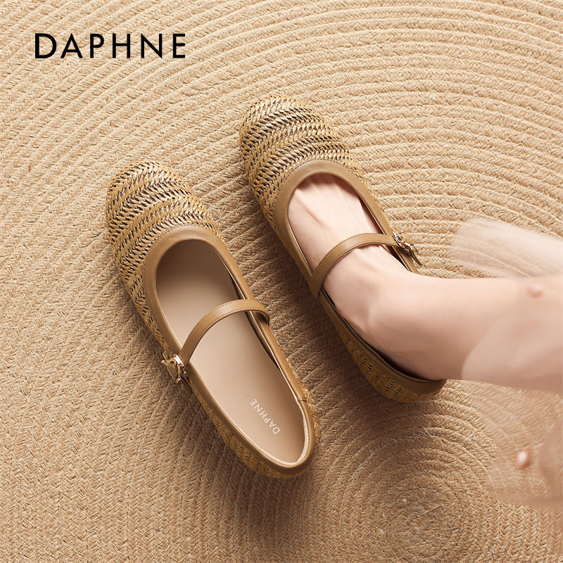 达芙妮棕色芭蕾玛丽珍鞋女2026春季新款镂空编织凉鞋平底浅口单鞋