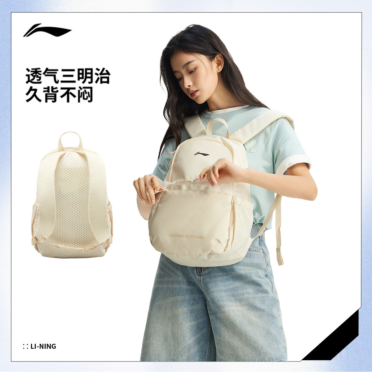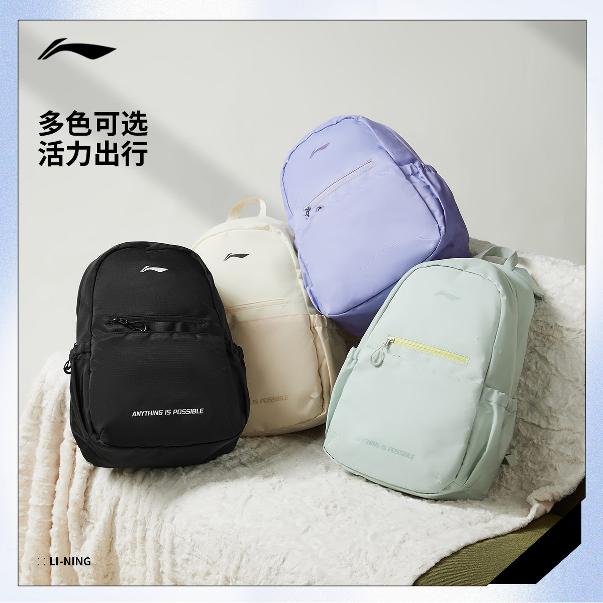 李宁双肩包男包女包健身系列防泼水背包书包学生环保运动包
