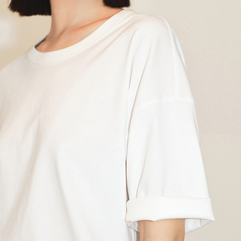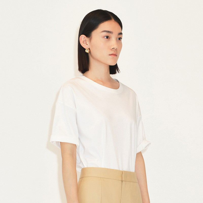 LESS秋季棉质短袖女简约宽松舒适圆领纯色T恤2M7111000