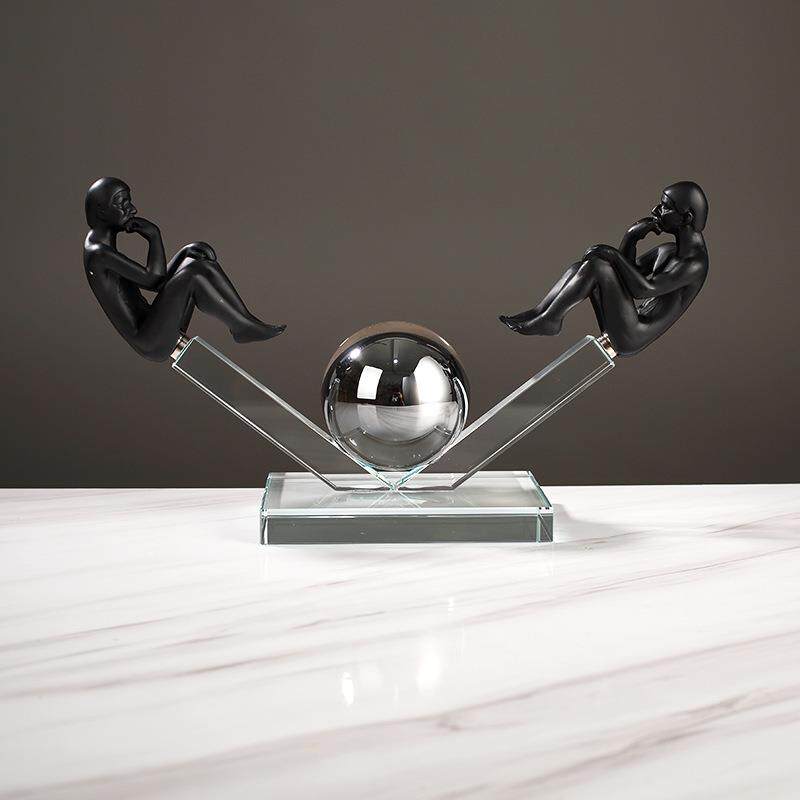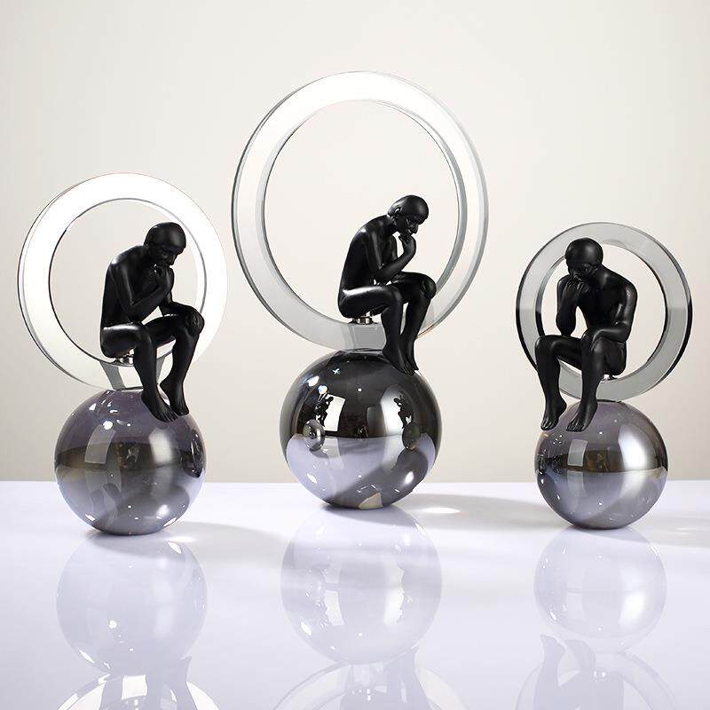 现代人造水晶思考者轻奢创意几何设计感工艺品家居样板房装饰品摆