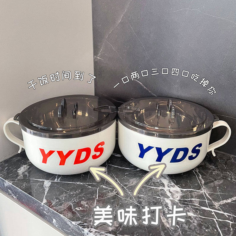 不锈钢泡面碗带盖宿舍方便面碗餐具饭盒小学生汤碗饭碗可沥水保温