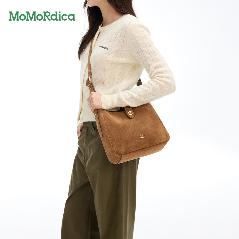 Momordica复古真皮马鞍包2025时尚牛皮斜挎包单肩包通勤休闲百搭