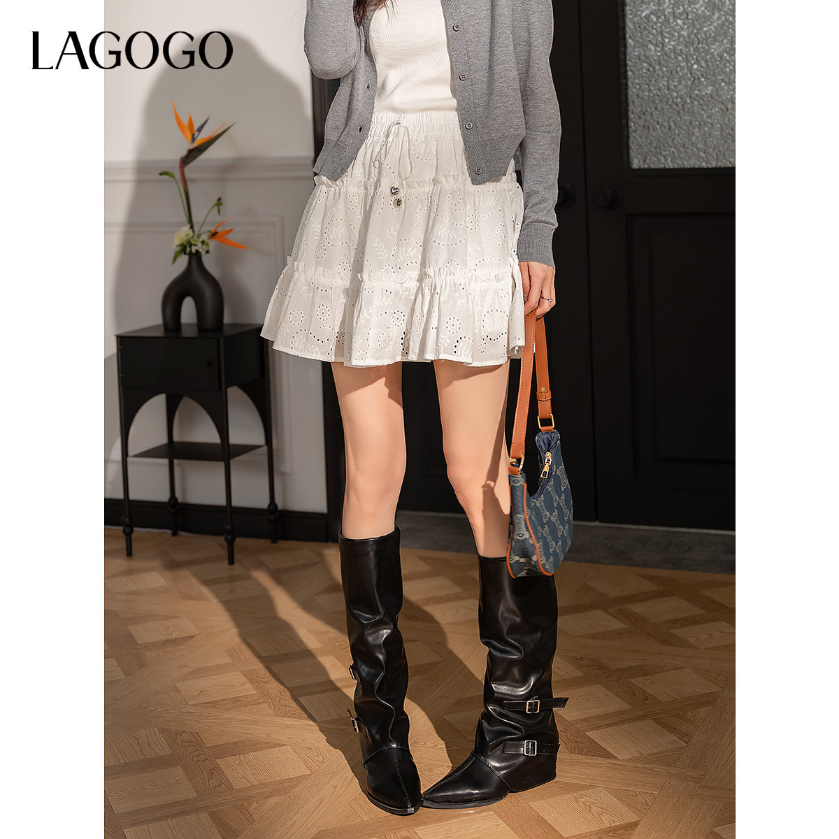 【100棉半身裙】LAGOGO芭蕾风蛋糕裙女拉谷谷2025秋冬新款白裙子