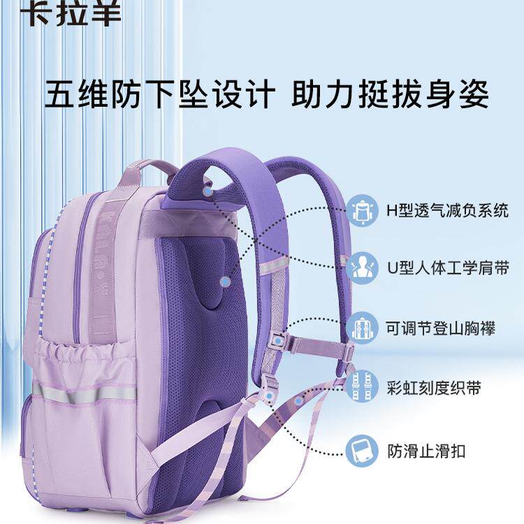 卡拉羊中学生书包减负风琴书包男女生青少年书包小学生书包儿童双肩包男孩大容量女孩防水书包品牌旗舰正品