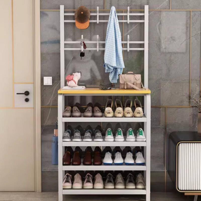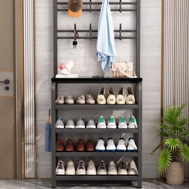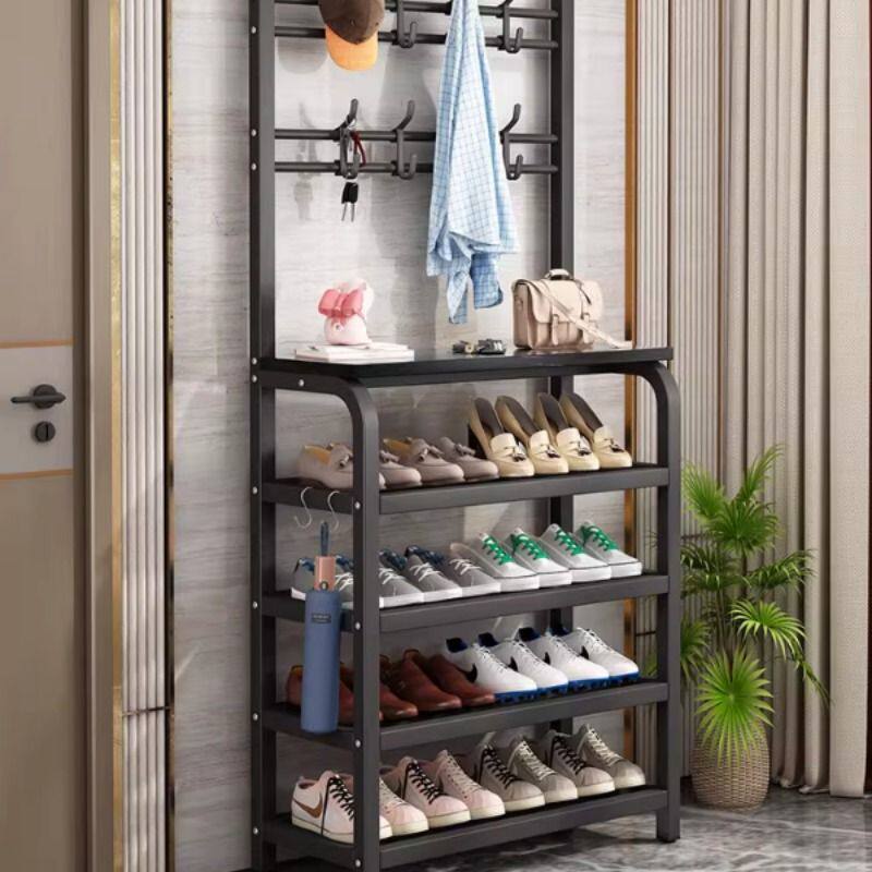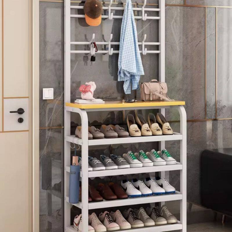 鞋架子简易家用室内入门口衣帽架一体式鞋柜收纳神器多层衣架碳钢