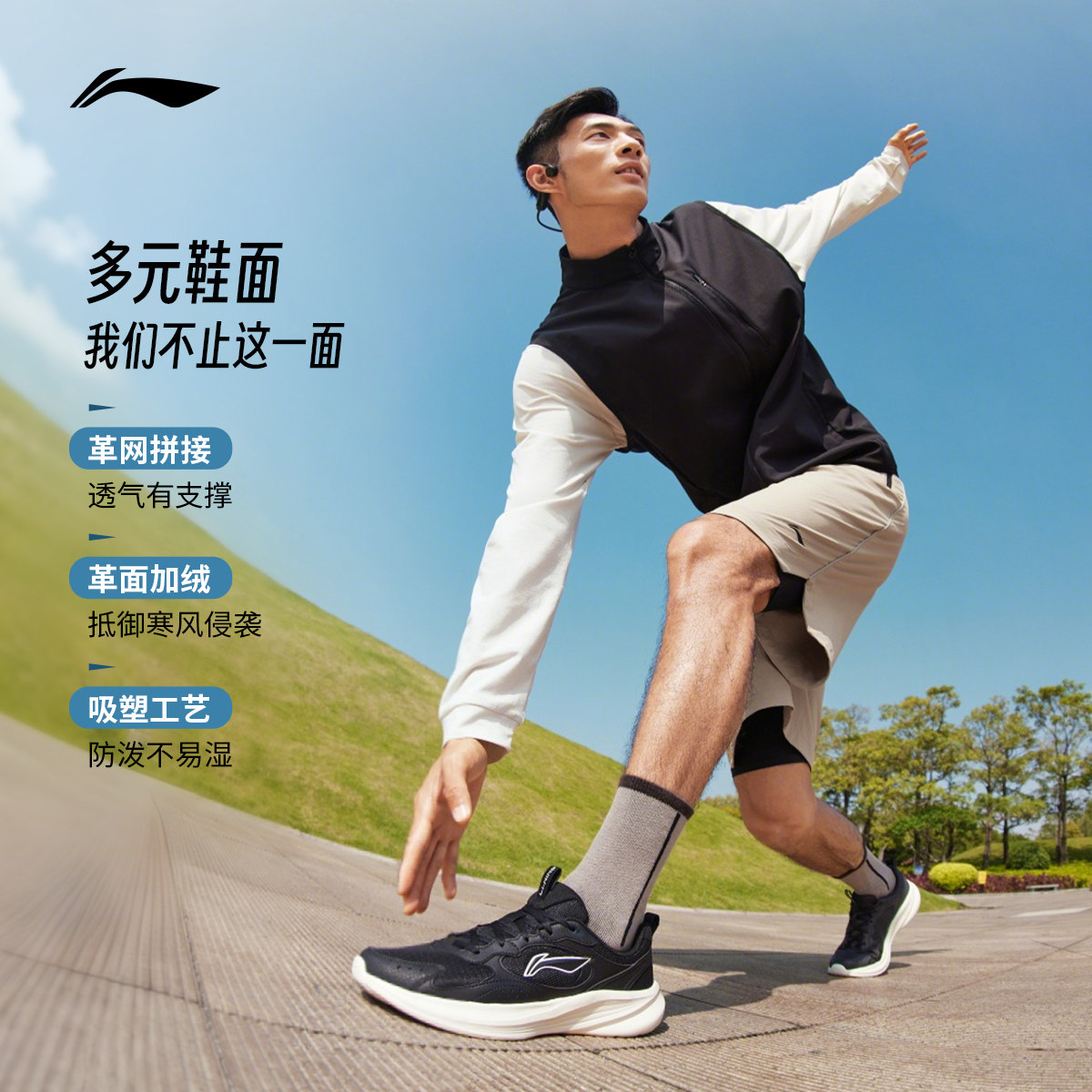 李宁跑步鞋男鞋官方减震耐磨网面轻便透气跑鞋黑色休闲慢跑运动鞋