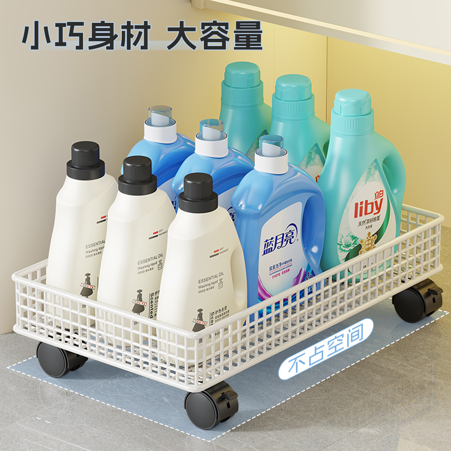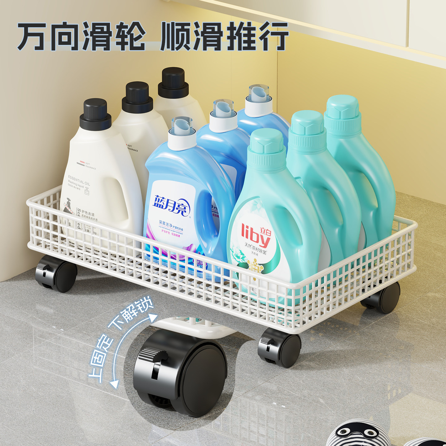 脏衣篮多功能带滑轮可移动洗衣粉收纳架洗漱台下开放洗衣液放置筐