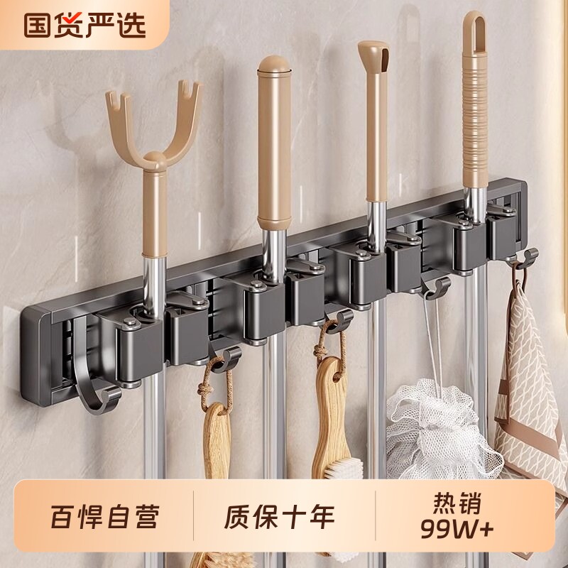 百悍拖把架强力粘胶挂钩免打孔门后厨房粘钩厕所墙上壁挂拖把夹