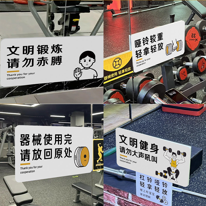 健身房标语健身房提示牌器械归位标语亚克力健身房安全提示牌警示标语私教室哑铃归位轻拿轻放创意指示牌定制