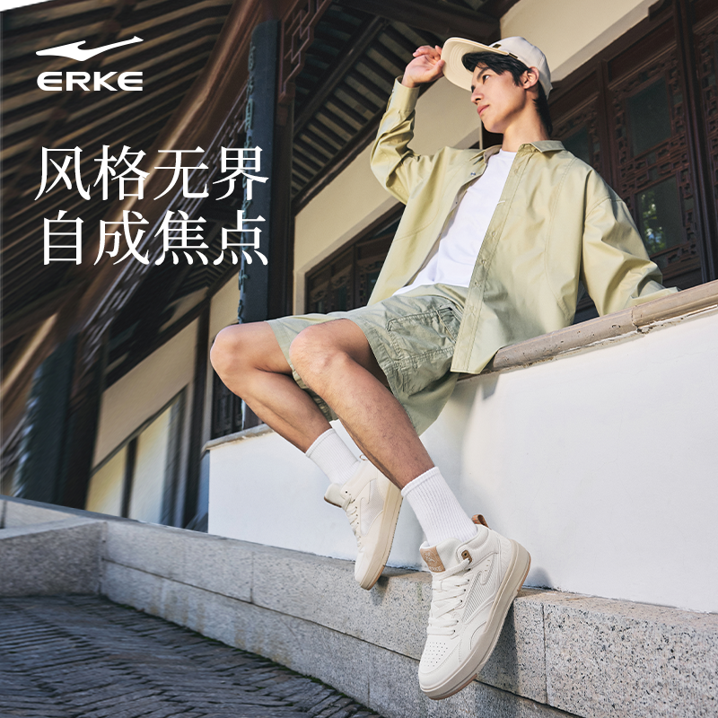征服4鸿星尔克板鞋男鞋冬季新款青少年休闲鞋男士鞋子高帮运动鞋
