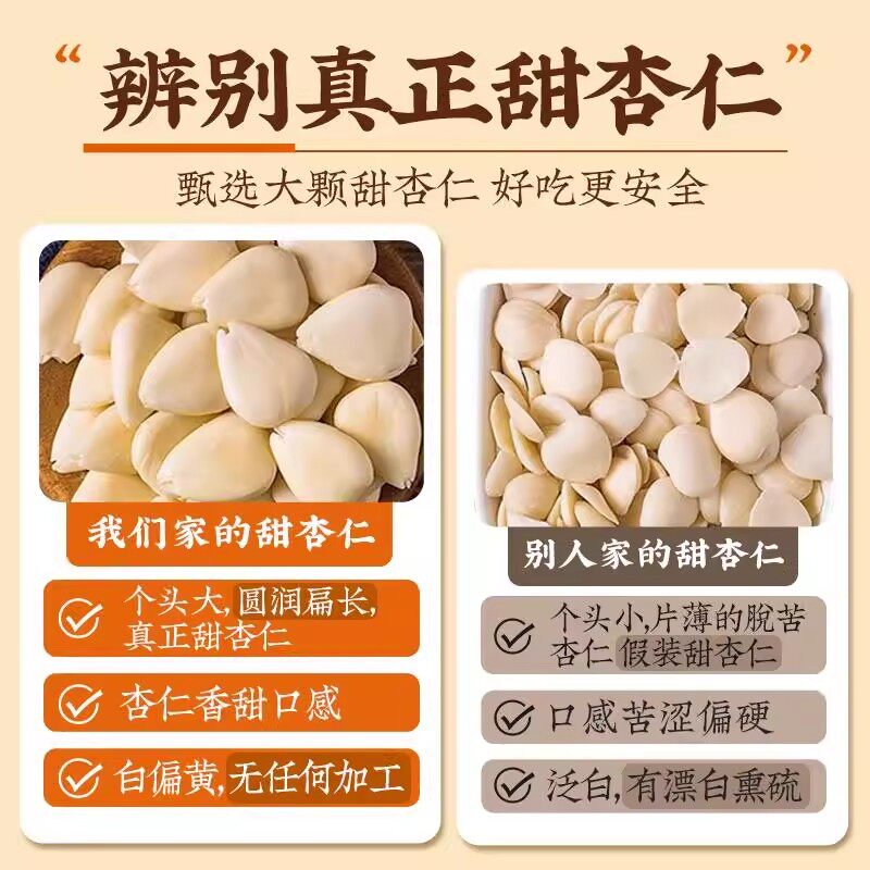 2025年新货承德南杏仁片500g生去皮原味无添加南北白山甜杏仁坚果