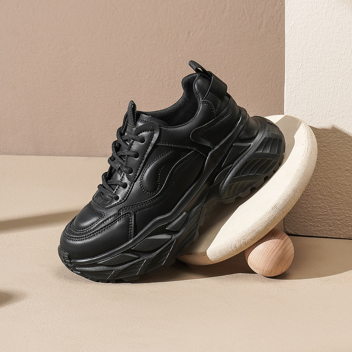 松糕底显腿长黑色休闲老爹鞋